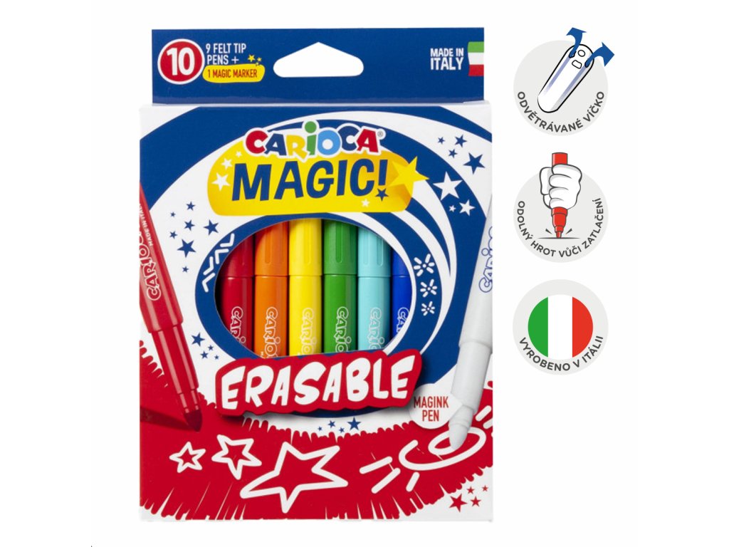 Sada fix a speciálního zmizíku, který odstraní z papíru barvu fixy. Malujte, zmizíkujte a čarujte jako skuteční kouzelníci! Nevhodné pro děti do 3 let.Doplňkové parametry