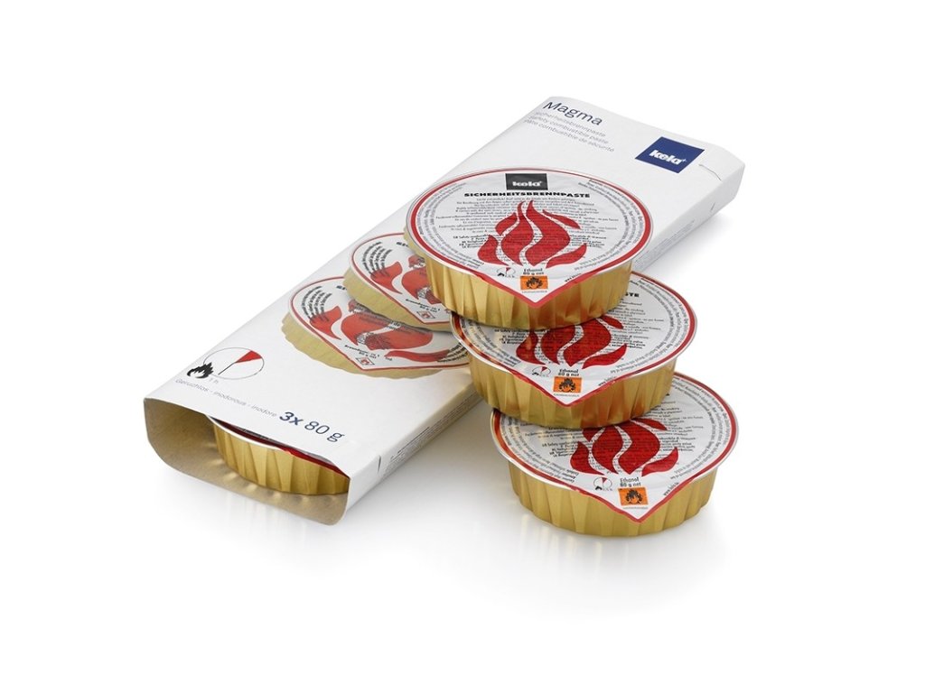 Tento set hořlavé pasty je ideální pro použití s fondue, raclette, Feuerzangenbowle a dalšími kuchyňskými spotřebiči. Vysoce kvalitní ethanolová pasta zajišťuje rovnoměrné a dlouhotrvající hoření, které je bez zápachu a kouře. Díky tomu je ideální pro dlouhé večery s rodinou a přáteli.