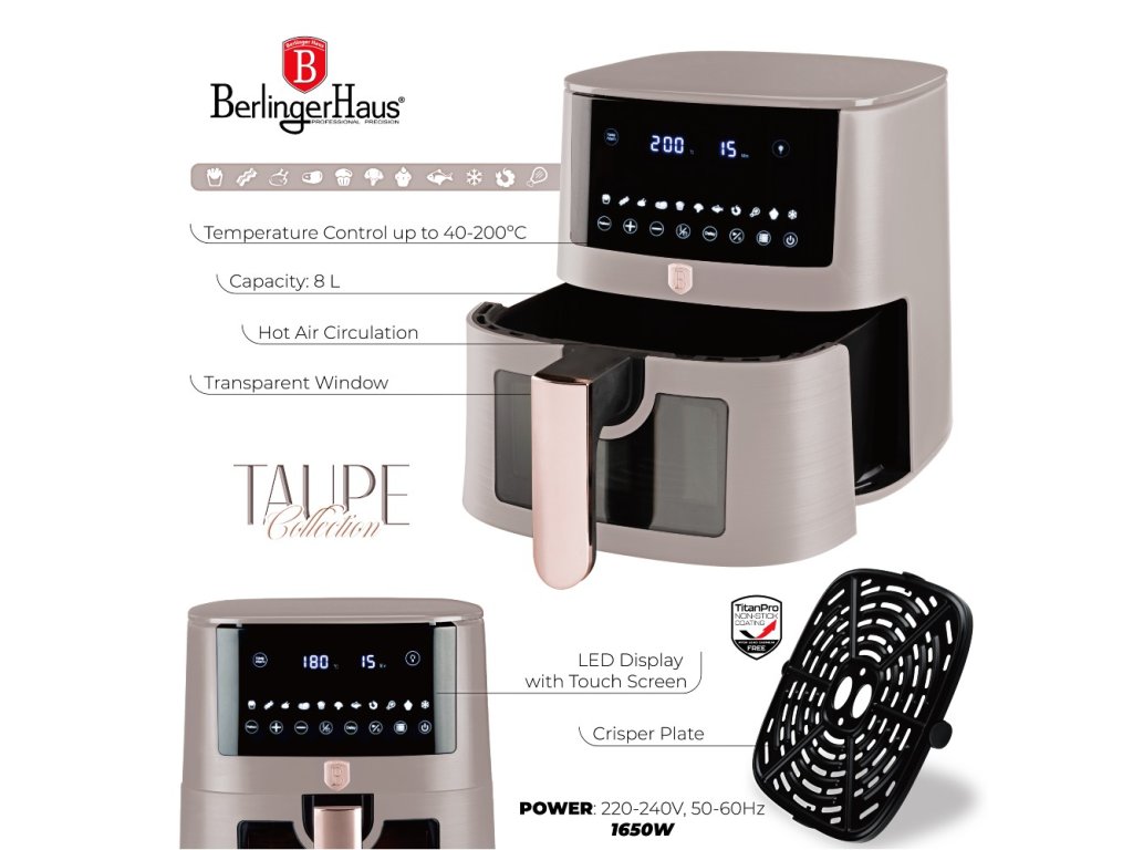 BERLINGERHAUS Horkovzdušná fritéza 8 l Taupe Collection BH-9608