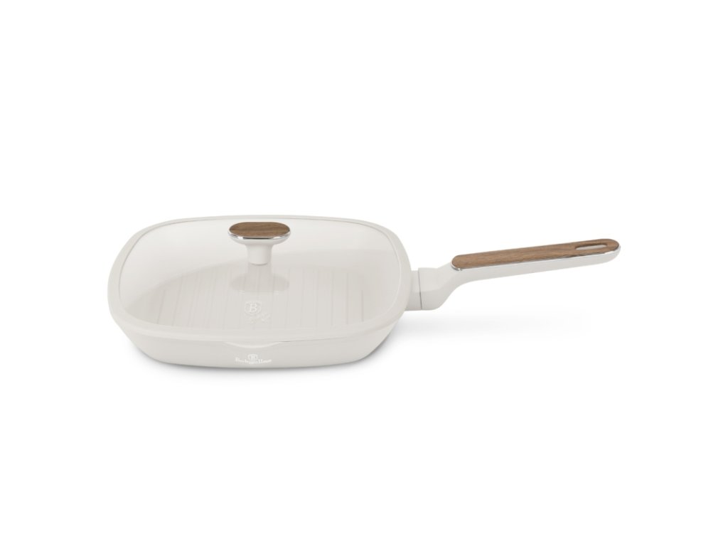 Technické parametry:• Materiál: kovaný hliník s nepřilnavým povrchem TitanPro• Grilovací pánev s titanovým povrchem s poklicí pr. 28*4,1 cm 2,1 l• Barva: matná krémová, design dřevaREGISTROVANÝ DESIGN BERLINGERHAUS!Vlastnosti:• 3vrstvý odolný nepřilnavý povlak TitanPro• Ergonomická rukojeť a úchytka s měkčeným povrchem, stříbrnou vložkou a barvou světlého dřeva, které zůstávají chladné• Víko z tvrzeného skla s měkčeným zavíracím tepelně odolným silikonovým okrajem• Otvor pro páru• Minimalistický styl• Matný povrch• Turbo indukční dno• Vhodné pro všechny typy varných desek• Ekologicky šetrné bez PFOA, olova a kadmia• Snadno se čistíDoplňkové parametry