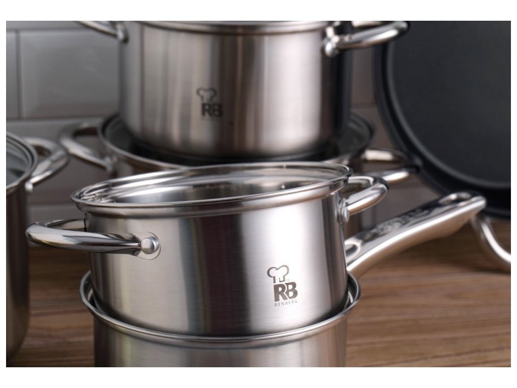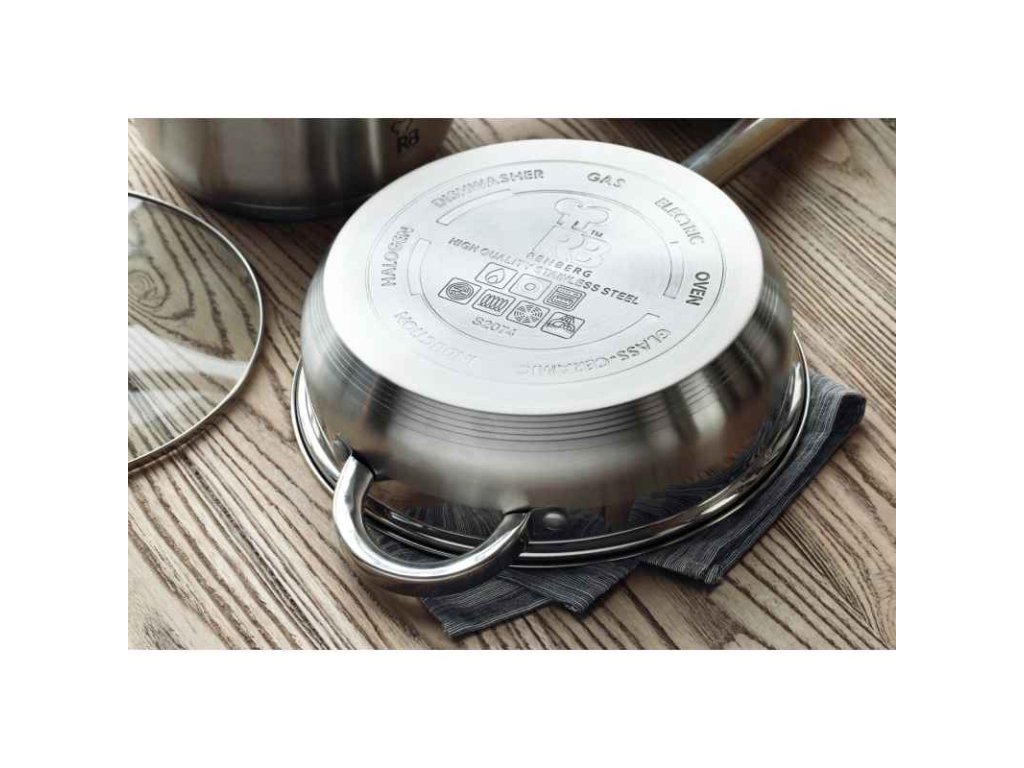 - materiál: nerezová ocel- vícevrstvé sendvičové dno pro efektivní vaření- skleněné poklice s madlem z nerezové oceli- celonerezové jsou také postranní rukojeti- všechny úchyty jsou spojeny pevným nýtem, takže se neuvolní a nemusí se dotahovat- pánev s nepřilnavým povrchem pro zdravé smažení a restování bez připalování- kombinace matného a lesklého povrchu- vhodné pro všechny typy sporáků i na indukci- vhodné do trouby do maximální teploty 220°C / s poklicí 180°C- sada 12 ks obsahuje:- rendlík s poklicí 16 x 10,5 cm / 2,1 litru- hrnec s poklicí 16 x 10,5 cm / 2,1 litru- hrnec s poklicí 18 x 11,5 cm / 2,9 litru- hrnec s poklicí 20 x 12,5 cm / 3,9 litru- hrnec s poklicí 24 x 14,5 cm / 6,5 litru- pánev: 3,4l, 24 x 7,5 cm s poklicí a nepřilnavým povrchem- trouba: 220°C (s poklicí 180°C)- myčka: ano- indukce: ano- sklokeramika: ano- plyn: ano- elektřina: ano- poklice: ano- povrch: nerezový- značka: BergnerDoplňkové parametry