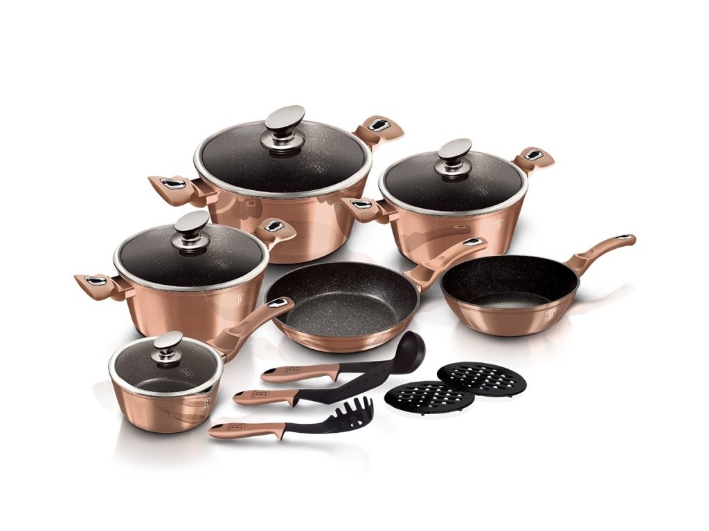 BERLINGERHAUS Sada nádobí s mramorovým povrchem 15 ks Rosegold Metallic Line BH-1224