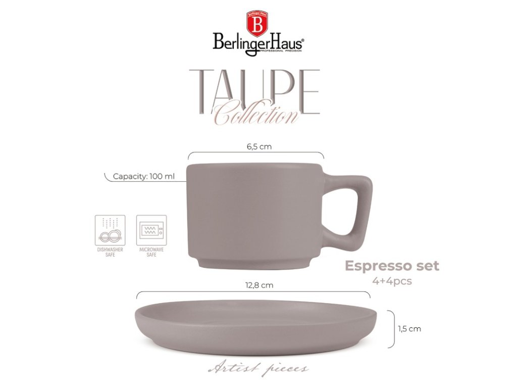 BERLINGERHAUS Sada hrnků na espresso s podšálkem 8 ks 100 ml Taupe Collection BH-10016