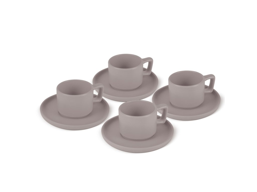 Představujeme sadu 4+4 šálků na espresso – matná taupe. Stylové chvíle pro milovníky kávy.