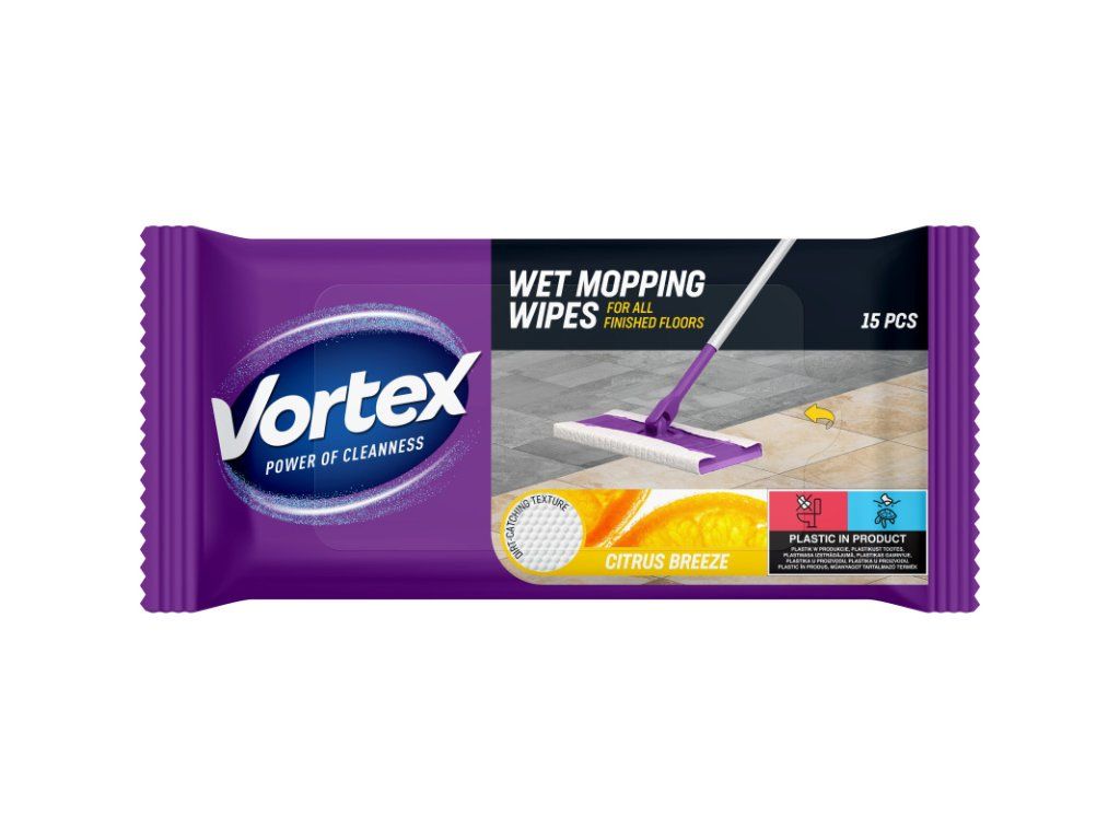 Vortex na podlahy čistící vlhčené ubrousky s citrusovou vůní pro pohodlné čištění vašich podlah, jsou navrženy tak, aby zanechávaly váš domov svěží a čistý, s vlhčenými mopovacími ubrousky VORTEX nebylo nikdy snazší dosáhnout čistého domova, rozlučte se s nepořádkem a přivítejte vnitřní harmonii s našimi vysoce kvalitními a stylovými produkty Vortex, doporučeno používat s Vortex mopem nebo ostatními mopy pro rychlý úklidDoplňkové parametry