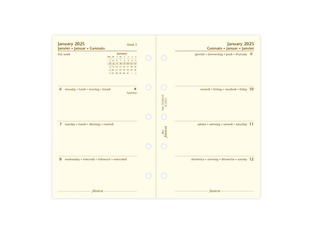 Filofax, Kalendář 2025 mini, týden/2 strany, krémová, 4 jazyky
