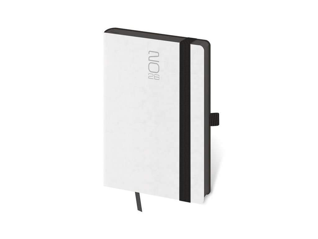 Týdenní kapesní diář 2026 Memory - bílý s gumičkou