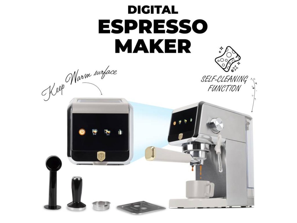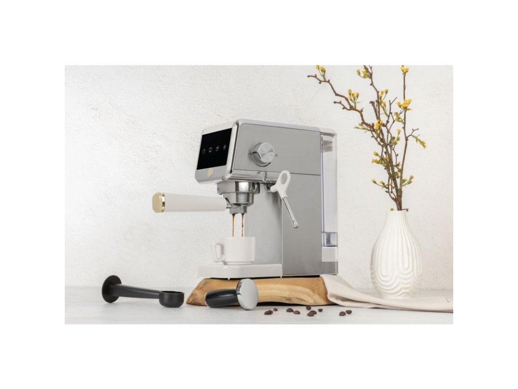 Tento digitální kávovar na espresso v elegantní matné krémové barvě je ideální volbou pro každého milovníka kvalitní kávy. Díky profesionálním funkcím, vysokotlakému čerpadlu a dotykovému ovládání nabízí skvělý uživatelský zážitek i perfektní výsledky přípravy espressa nebo cappuccina v pohodlí domova.
