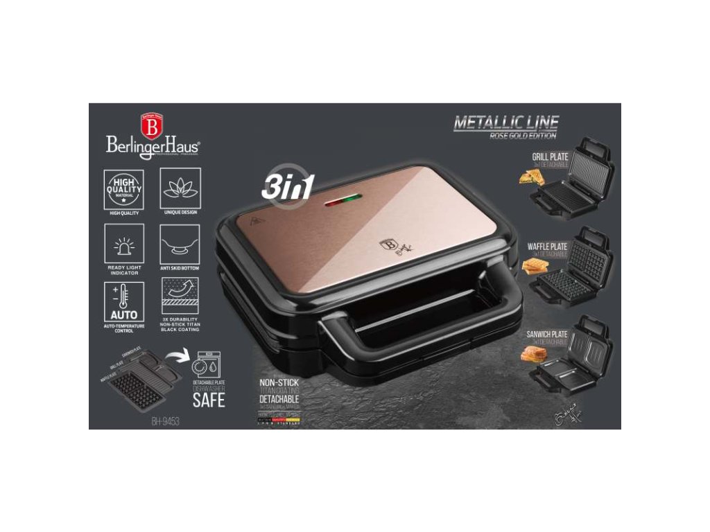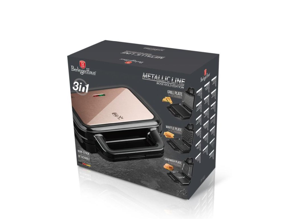 BERLINGERHAUS Sendvičovač a vaflovač s nepřilnavým povrchem 3v1 Rosegold Metallic Line BH-9453