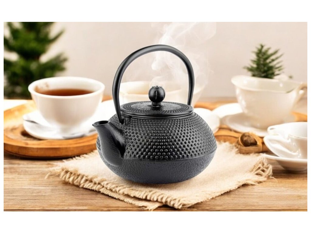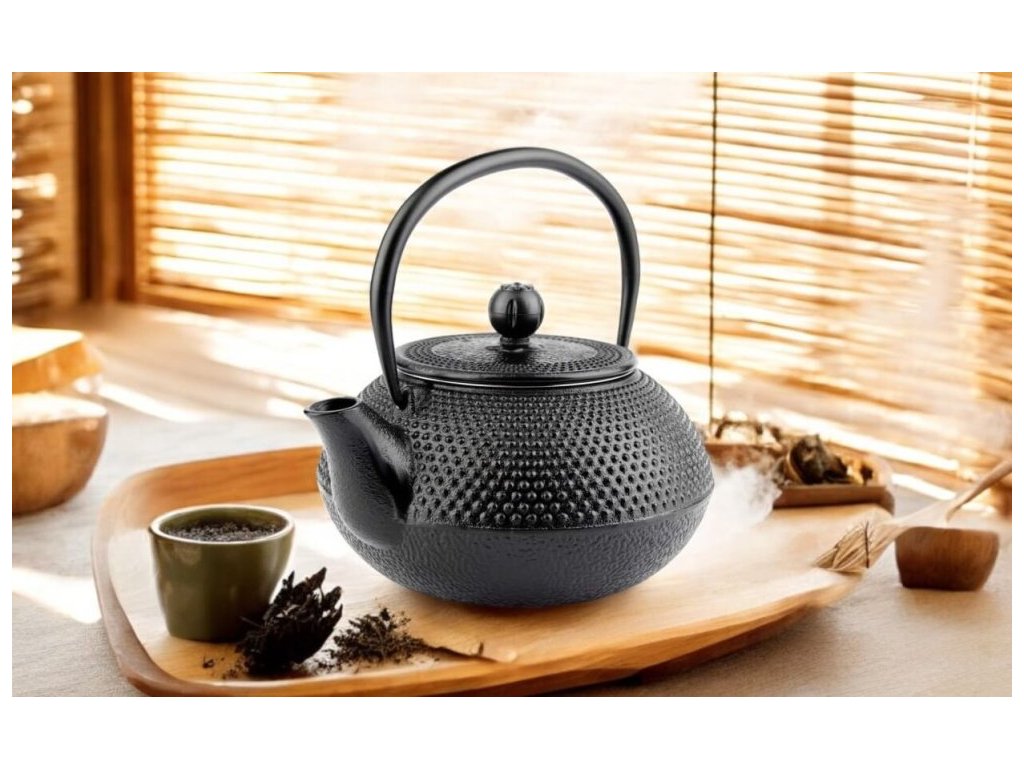Tato krásná litinová konvice od Imperial Kitchen má tradiční asijskou strukturu. Konvička má objem 0,8 litru. Konvička je také dodávána s odpovídajícím čajovým filtrem, díky kterému je ideální pro všechny druhy čaje. Pití čaje ještě nikdy nebylo tak stylové.Vlastnosti:- Černá- Litina- 0,8 litru- s nerezovým filtremVytvářejte orientální stolní scény s kolekcí SakuraTea. Představte si, že jste v Japonsku se stylovými konvičkami a doplňky od SakuraTea. Kvalitní litina zajistí, že čaj v konvicích zůstane dlouho ve správné teplotě. Překvapte své hosty stylově za skvělou cenu!Doplňkové parametry