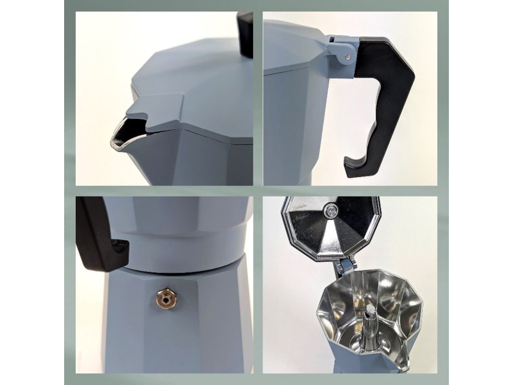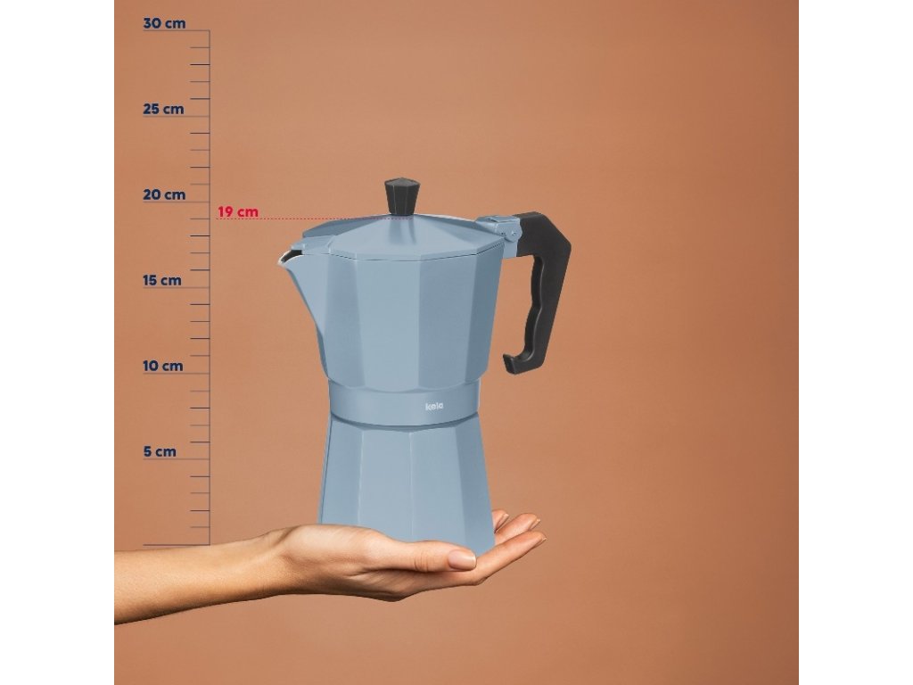 Konvice na espresso Italia, hliníková, kouřově modrá, 6 šálků (300 ml), 19 × 9 cm
