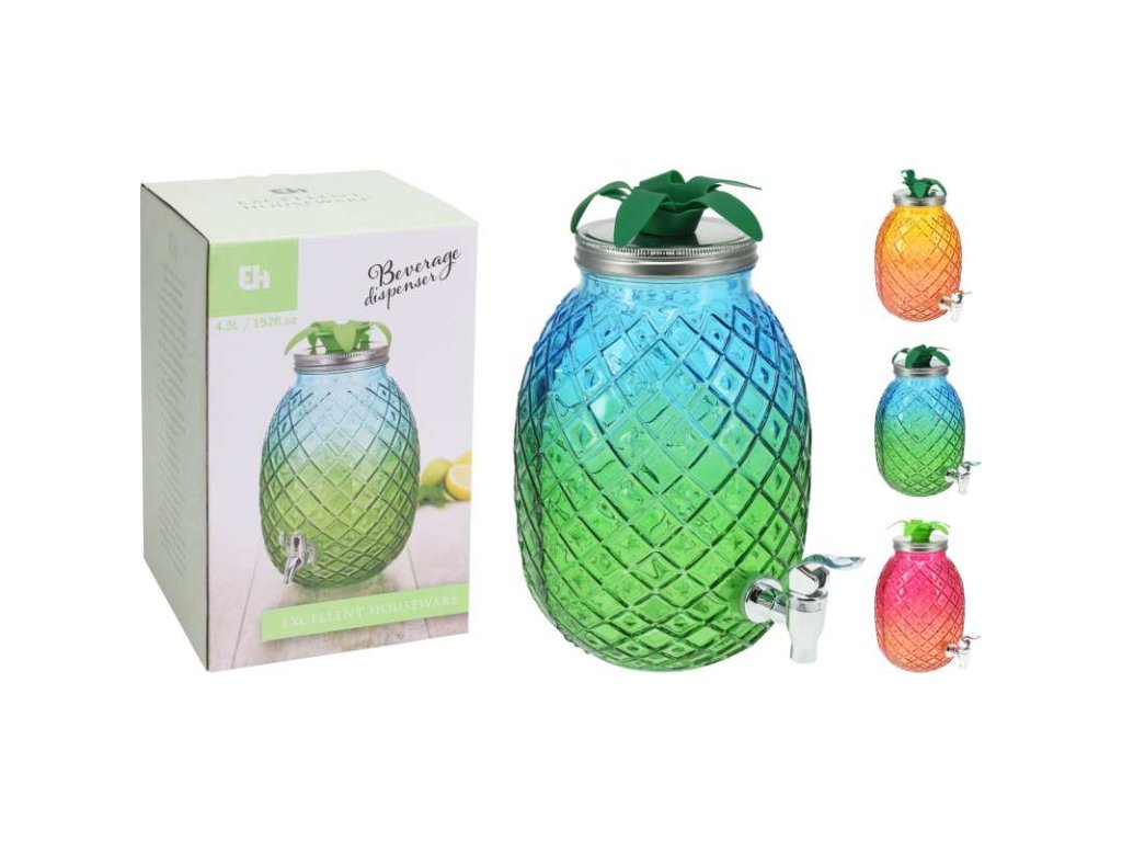 Skleněný dávkovač nápojů 4,5 l – barevný styl, který osvěží každou příležitost