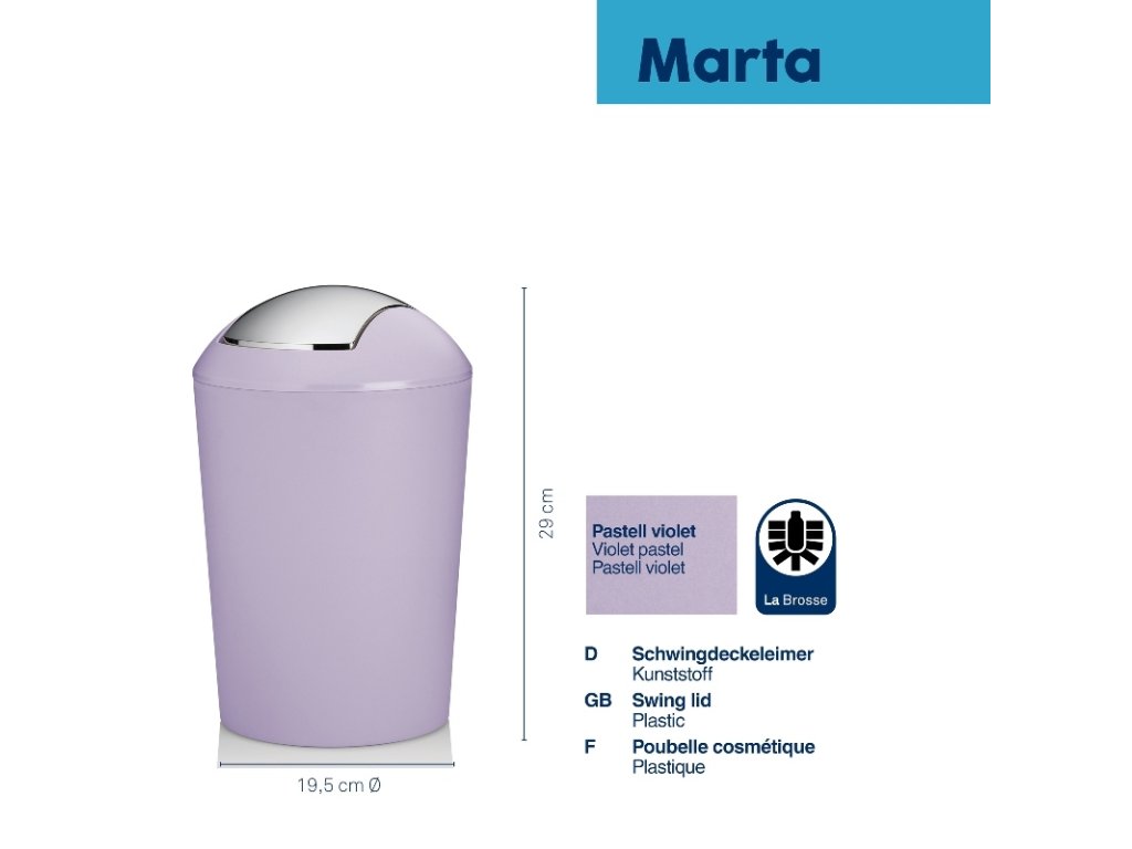 I přes svůj menší objem pojme dostatek odpadu a vyprazdňování je otázkou chvilky – stačí jednoduše sejmout víko. Marta je navíc dostupná v různých barvách, takže ji snadno sladíte s ostatním vybavením.