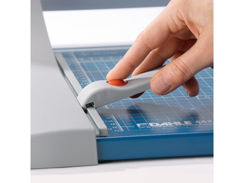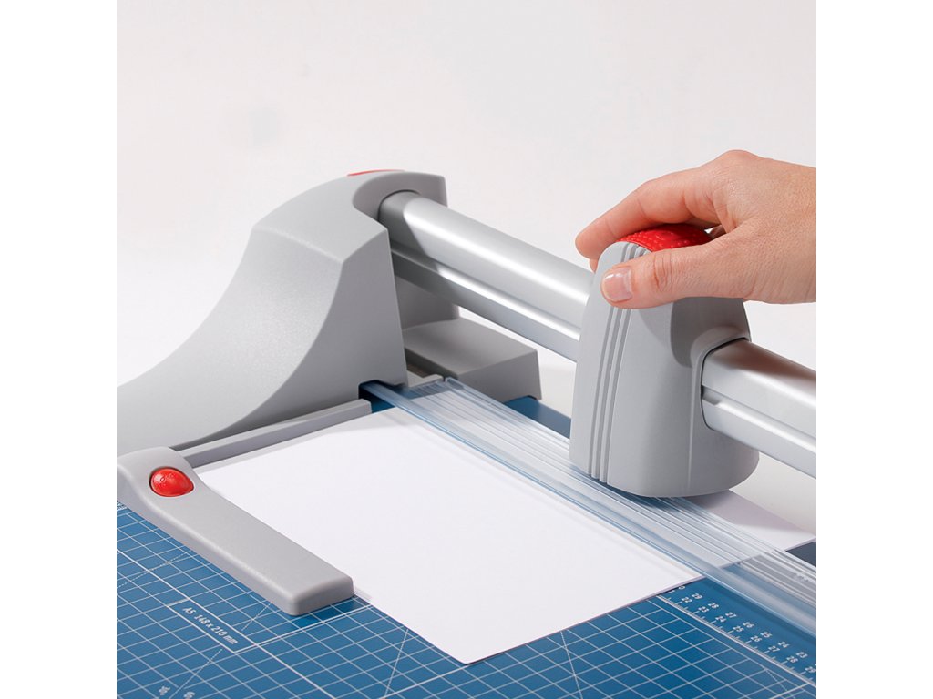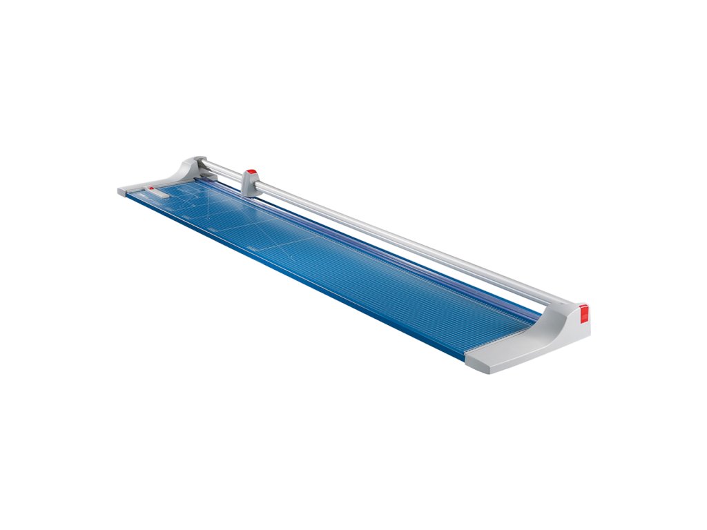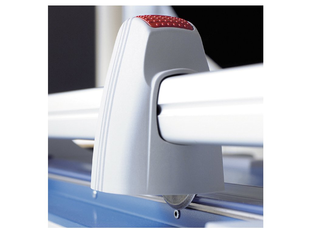 Prémiová kotoučová a velkoformátová řezačka pro profesionální použití. Samo-ostřící horní a spodní nůž z tvrzené oceli pro dlouhodobě přesný řez. Určeno pro více druhů materiálů: papír, karton, textil, fotografie a fólie. Stabilní kovový stůl s neklouzavými pryžovými podložkami pro komfortní provoz. Uzavřená hlava nože zajišťuje vysokou míru bezpečnosti. Snadná výměna řezací hlavy. Natištěné úhly, rastr a DIN formáty usnadňují přesné vyrovnání řezaného materiálu. Dva příložníky s dělením v mm a nastavitelným zadním dorazem pro fixaci řezaného materiálu a přesný řez 90°. Automatický přítlak v místě řezu pro rychlé zafixování řezaného materiálu. Pro úsporu místa možnost montáže na stěnu. Lze dokoupit: náhradní řezací hlava, stabilní kovový stojan se záchytnou vanou. Vyrobeno v ČR.Doplňkové parametry