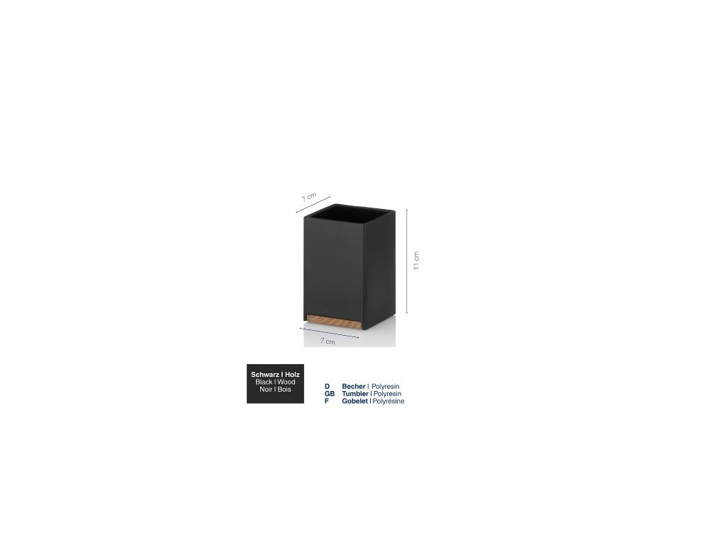 Černý kelímek na zubní kartáčky ze série Cube od kela. Díky hranatému základnímu tvaru a solidně vypadající optice v kombinaci s černou barvou získává hrnek osobitý vzhled. Rozměry: 7x7x11 cm Polyresin, matná černá, dubové dřevo 7x7cm, 11cm vDoplňkové parametry