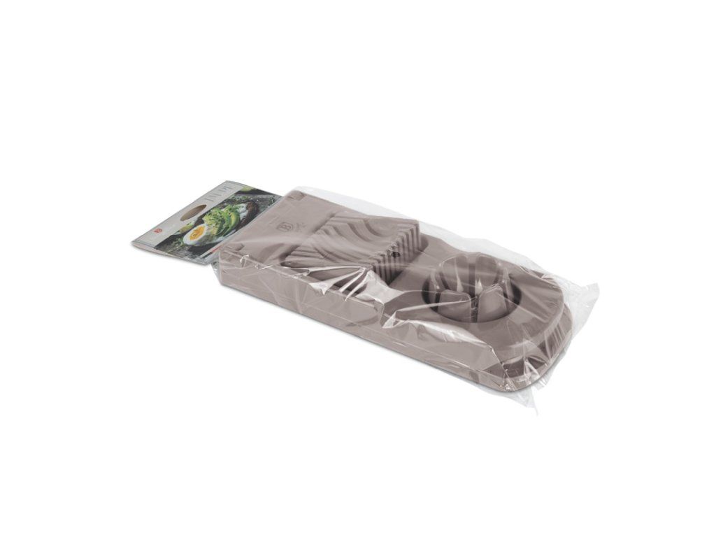 Tento praktický kráječ 2 v 1 v moderní matné šedohnědé taupe barvě je ideálním pomocníkem pro každou kuchyni. Kombinuje funkci kráječe na vejce a mozzarellu, čímž šetří místo i čas. Díky dvěma možnostem krájení – na proužky nebo dělené části – snadno připravíte suroviny pro saláty, sendviče nebo studené mísy.