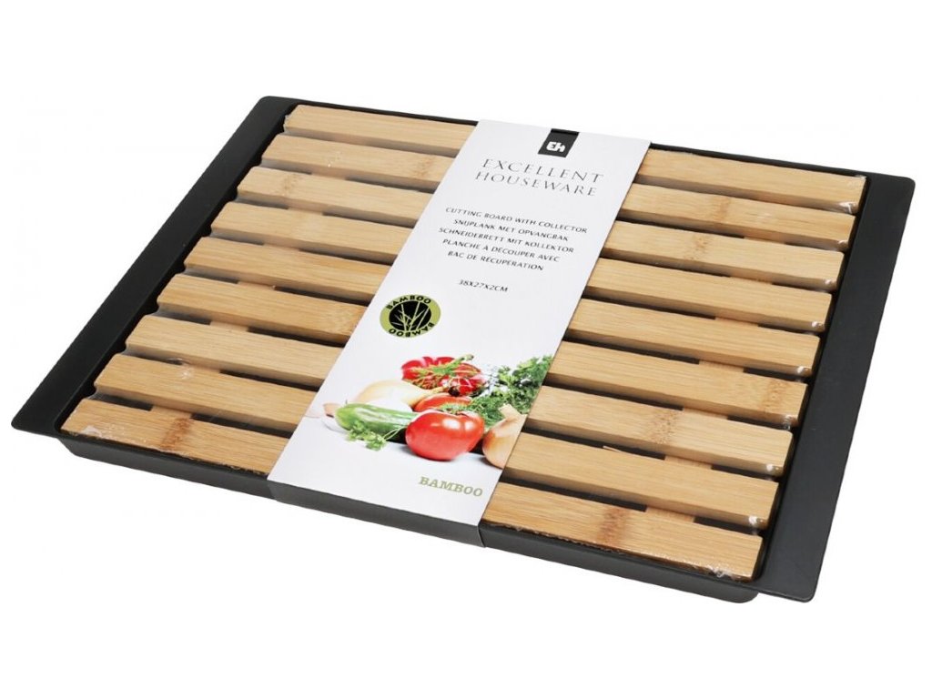 Praktické a elegantní krájecí prkénko vyrobené z bambusu (Phyllostachys) s odnímatelným PP tácem v antracitové barvě. Díky drážkám v bambusové části se drobky zachytí do spodního tácu, což usnadňuje úklid a udržuje pracovní plochu čistou. Kombinace přírodního bambusu a moderní antracitové barvy dodává prkénku stylový vzhled.