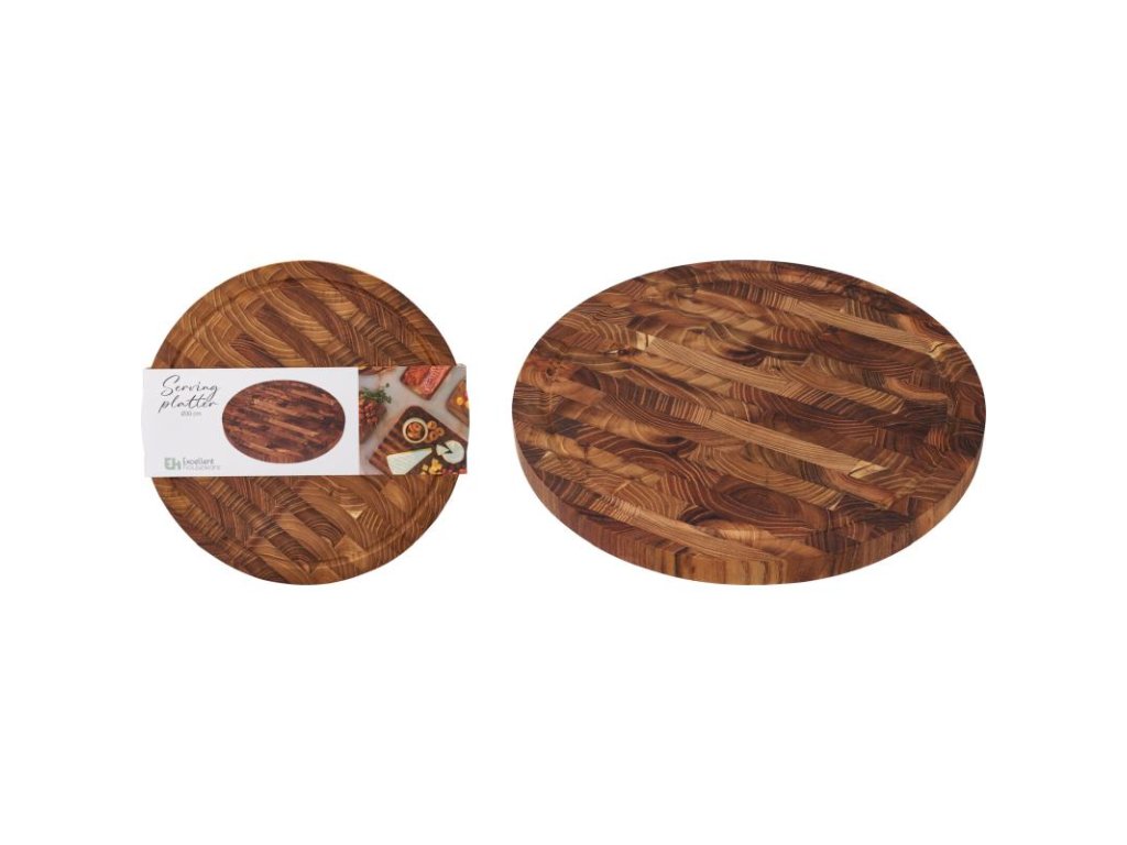 Tento stylový a odolný kousek z prvotřídního teakového dřeva (Tectona Grandis) kombinuje funkčnost s přírodním šarmem. Díky designu s koncovými vlákny dřeva vyniká vysokou odolností proti opotřebení a přirozeně odpuzuje vlhkost. Skvěle se hodí pro krájení i stylové servírování.