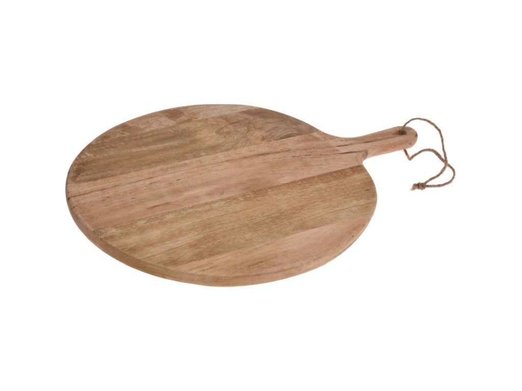 Impozantní kulaté prkénko, které zaujme na první pohled – nejen svou velikostí, ale i výjimečným charakterem. Poctivý kus mangového dřeva s pevnou rukojetí vám nabídne vše, co od dokonalého prkénka očekáváte: tvrdost, odolnost i styl. Je ideální pro krájení i servírování – od rustikálních snídaní až po elegantní večerní pohoštění. Olejovaný povrch zvýrazňuje přirozenou kresbu dřeva, čímž se z každého kousku stává jedinečný originál. Robustní, odolné proti vlhkosti a deformacím, s dlouhou životností – krásný a funkční doplněk, který si zaslouží místo ve vaší kuchyni i na vašem stole.
