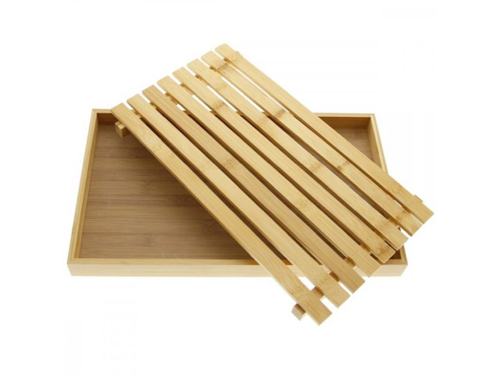Bambusové prkénko na krájení chleba s podtácem na drobky. Snadné vyprázdnění po zvednutím mřížky.- Materiál: bambus- Barva: přírodní hnědá- Délka: 38 cm - Šířka: 23 cm- Výška: 4 cmDoplňkové parametry