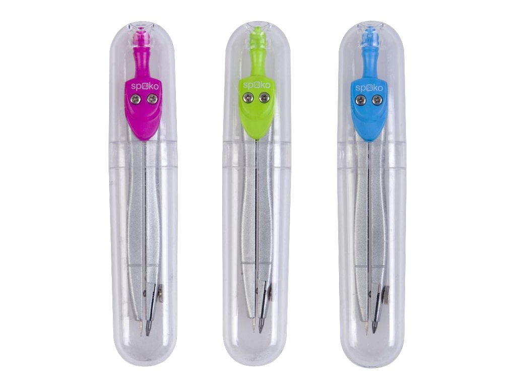 Jednoduché kovové kružítko v atraktivních barvách. Ideální pro první stupeň základní školy. Manipulace s tuhou pomocí povolovacího šroubu. Tvarovaný úchop s drážkami pro pohodlné držení. Baleno v transparentní plastové etui, vhodné do školního penálu.Doplňkové parametry