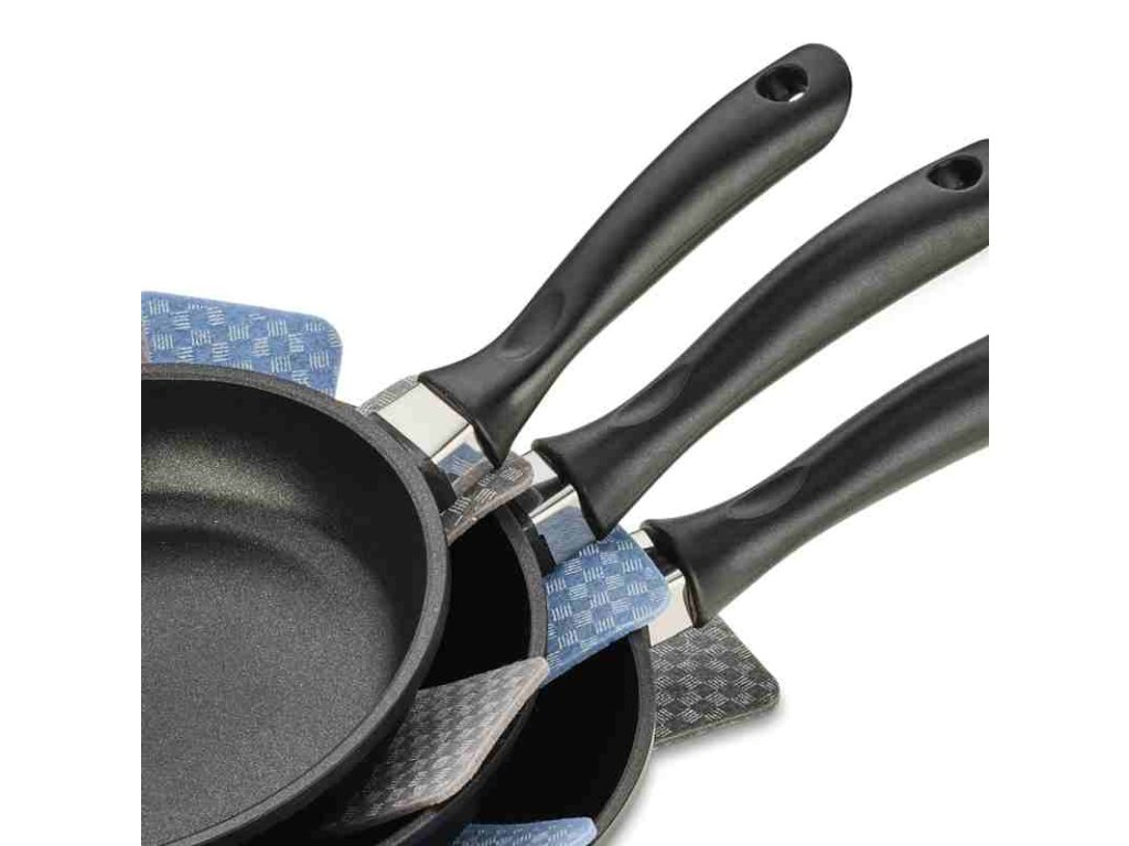 Bezpečně stohujte své pánve pomocí třídílné sady chráničů pánví Amparo. Stabilní plsť chrání vaše pánve před nepříjemným poškrábáním při stohování. Sada obsahuje tři chrániče pánve ve dvou různých barvách (1x tmavě šedá, 1x mátově zelená a 1x světle šedá). Všechny tři mají tloušťku 3 mm.filc 1x tmavě šedá 39cm 1x mátová zelená 35cm 1x světle šedá 31cmDoplňkové parametry
