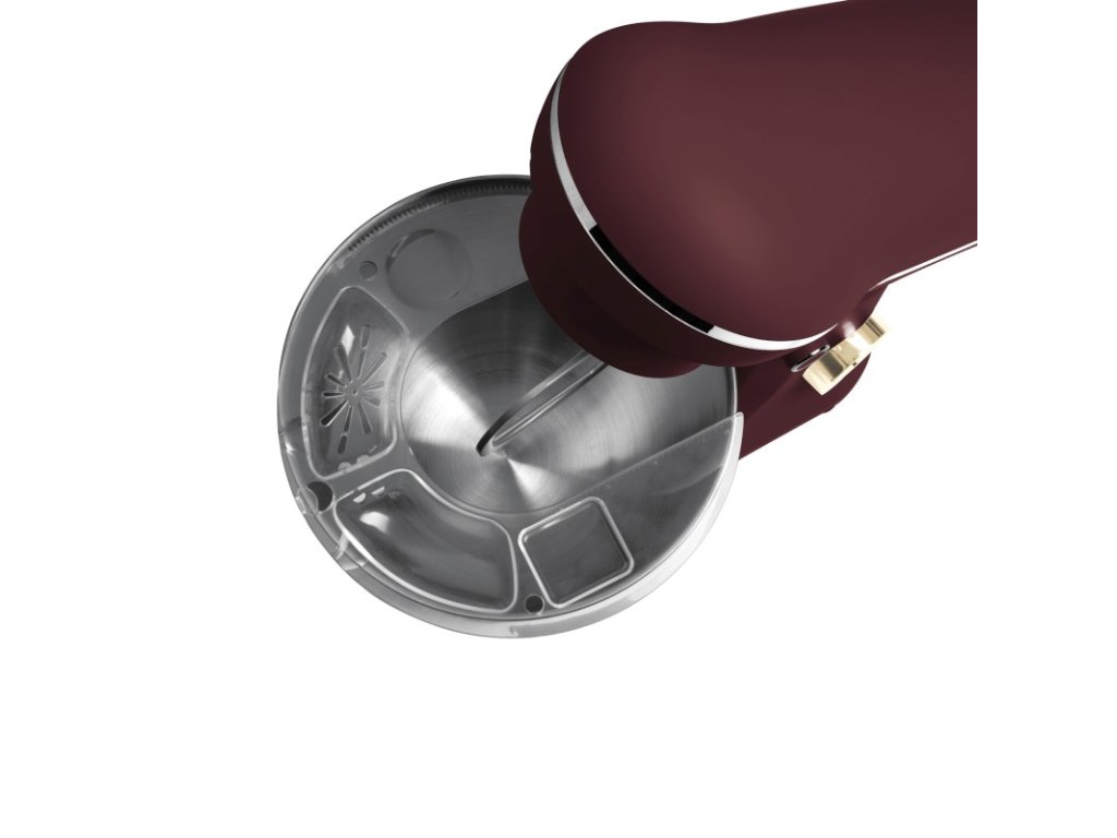 Elegantní kuchyňský robot v matně bordó barvě je výkonný a stylový pomocník, který usnadní přípravu těsta, krémů i šlehačky. S výkonným motorem a praktickým příslušenstvím se stane nepostradatelnou součástí každé moderní kuchyně.