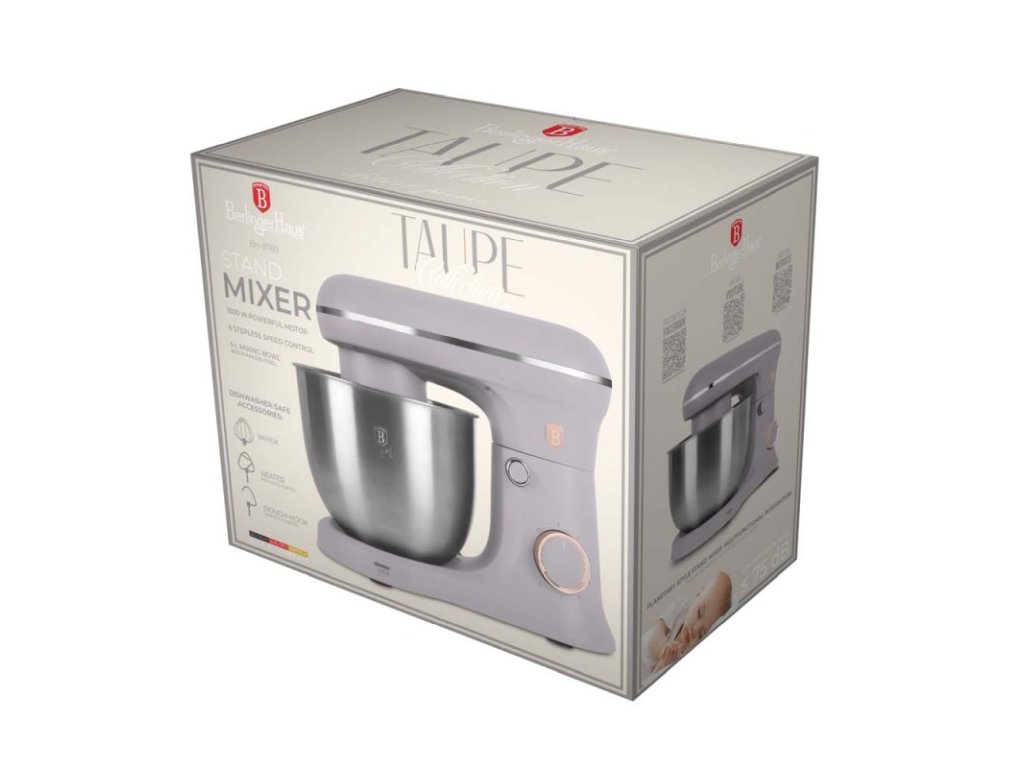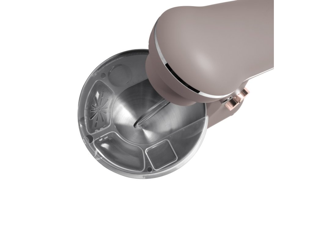Elegantní kuchyňský robot v matně taupe barvě je výkonný a stylový pomocník, který usnadní přípravu těsta, krémů i šlehačky. S výkonným motorem a praktickým příslušenstvím se stane nepostradatelnou součástí každé moderní kuchyně.