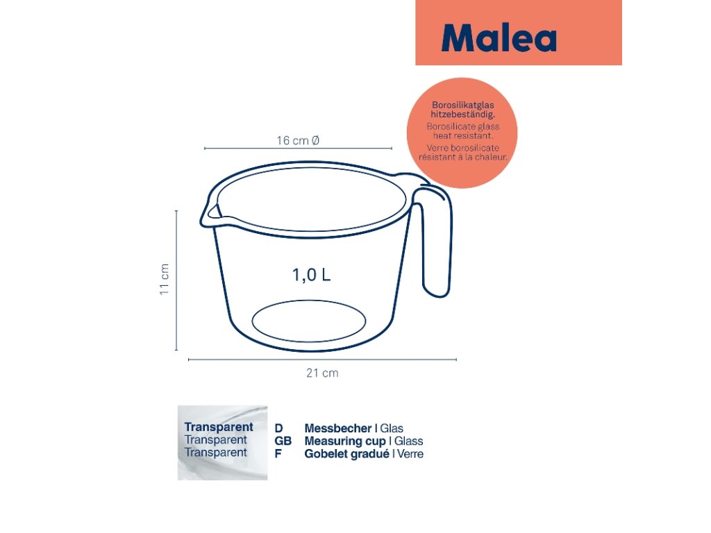 Odměrka Malea o objemu 1 litr je skvělým pomocníkem pro každodenní kuchařské i pekařské dobrodružství – praktická, elegantní a vždy připravená vám usnadnit práci.