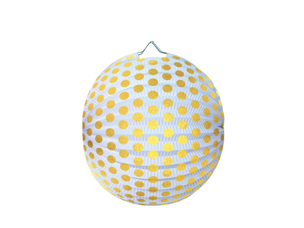 Lampion kulatý 25 cm - zlatý puntík