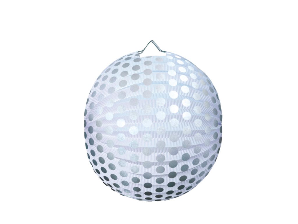 Lampion roztahovací 25 cm - stříbrný puntík