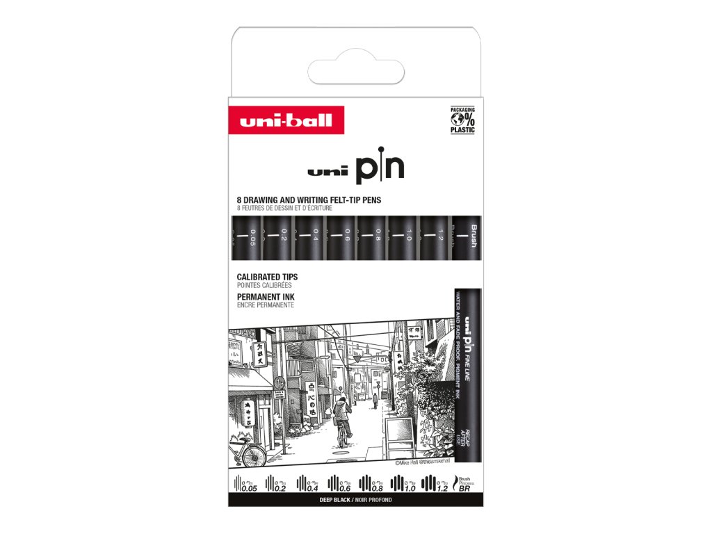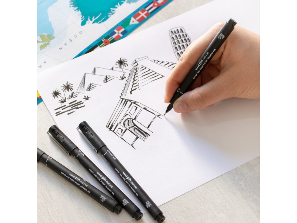 Rozšířená sada nejpoužívanějších kalibrovaných linerů, určená pro precizní techniky psaní a kreslení. Vhodná jak pro studenty, tak zkušené umělce. Inspirujte se tvorbou umělce Mike Hall, @thisismikehall, který je autorem kresby na přední straně.Doplňkové parametry
