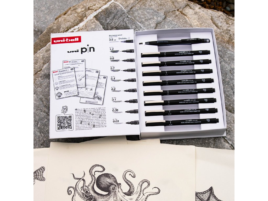 | 8 × kalibrovaný liner, černý: | 0,03; 0,05; 0,1;0,2; 0,4; 0,7; 0,9; 1,2 mm |