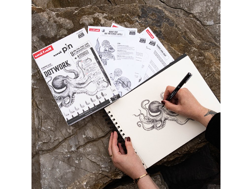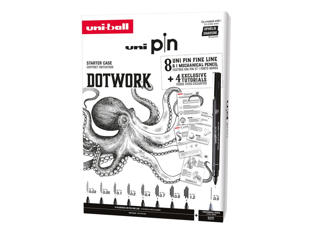 Dots je kresba tvořena technikou drobných teček seskupených do tvarů, linií nebo různých odstínu. Prozkoumejte tutoriály, tipy a triky od samotné autorky návrhů, ilustrátorky Ophelie Dhayere. Naučte se vytvářet umělecké iluze, které vykreslují monochromatický portrét. Naskenujte QR kód uvnitř sady a stáhněte si tutoriál v českém jazyce.Doplňkové parametry
