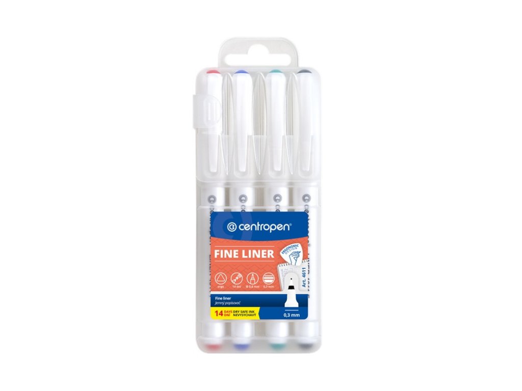 liner v novém, trojhranném designu s ERGO držením, je osazený velmi jemným plastovým hrotem a plněný speciálním nevysychavým inkoustem, vydrží i 14 dní bez chránítka a bude psát, šíře stopy 0,3 mm, délka stopy až 1500 m, balení 10 ksDoplňkové parametry