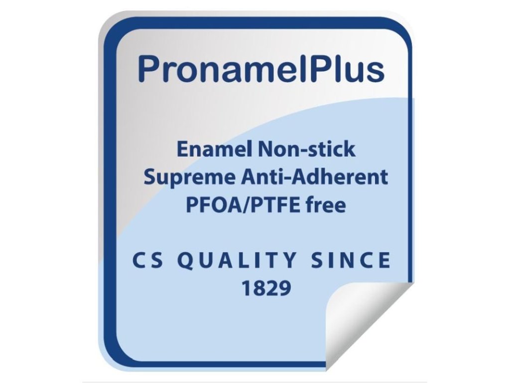 - 2 vrstvý, velmi odolný, vnitřní povrch PronamelPlus s vysoce nepřilnavými vlastnostmi při použití tuku nebo oleje. Vhodný pro domácí použití. Neobsahuje PFOA ani PTFE - bez možných zdravotních rizik.