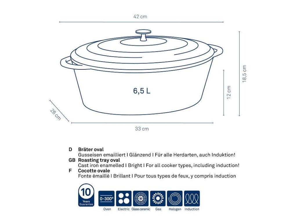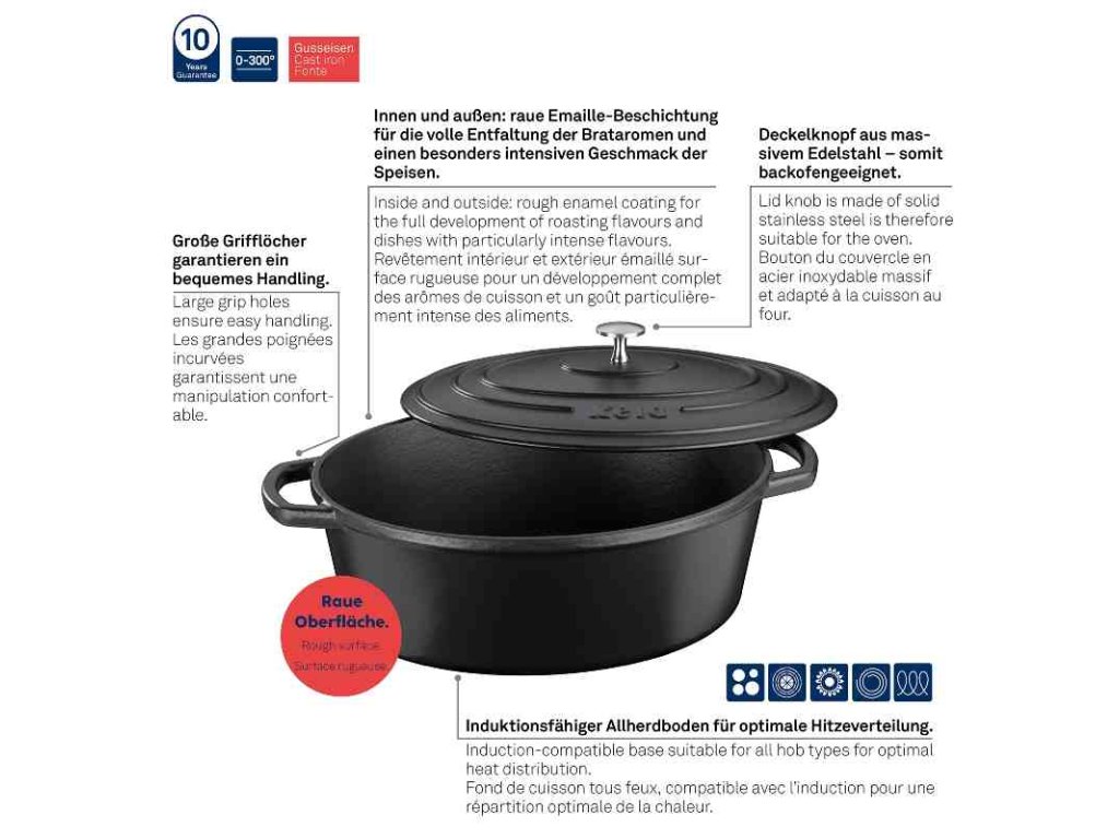Pekáč litinový s poklicí CALIDO 36x29 cm černá se skvěle hodní na pečení pokrmů