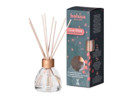 Vonný difuzér Bolsius Winterwoods se stébly. Objem 45ml.