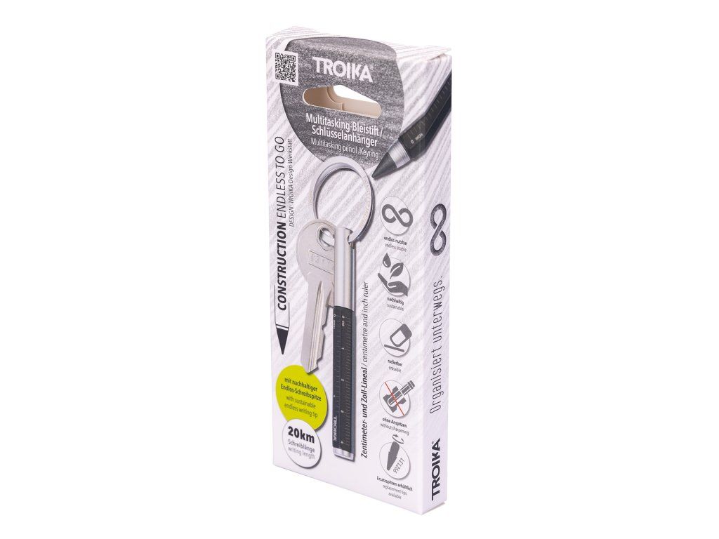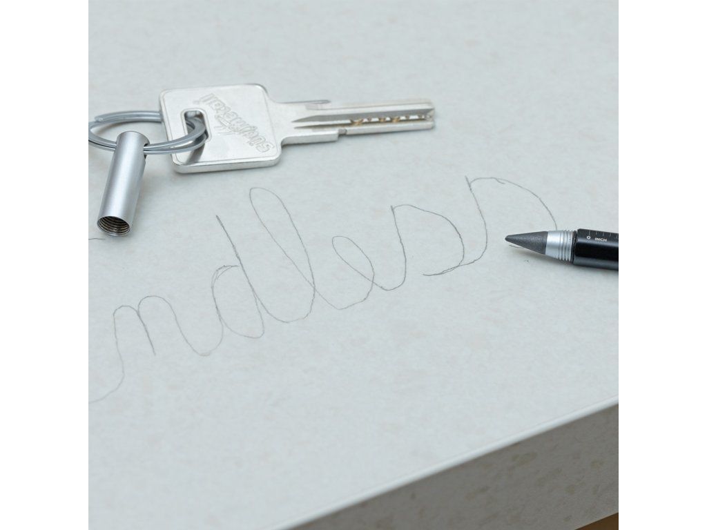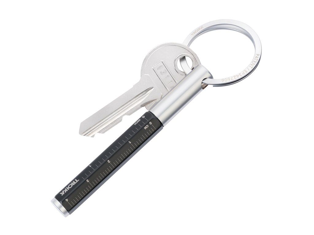 Klíčenka s grafitovou tužkou a praktickým kroužkem typu "Nail Guard" pro snadné připnutí bez poškození nehtů. Vyměnitelný hrot, který není potřeba ořezávat a s tuhou pro nekonečné psaní o délce až 20 km. Snadno gumovatelná. Lehká a odolná konstrukce těla z hliníku s motivem pravítka v centimetrech i palcích.Doplňkové parametry