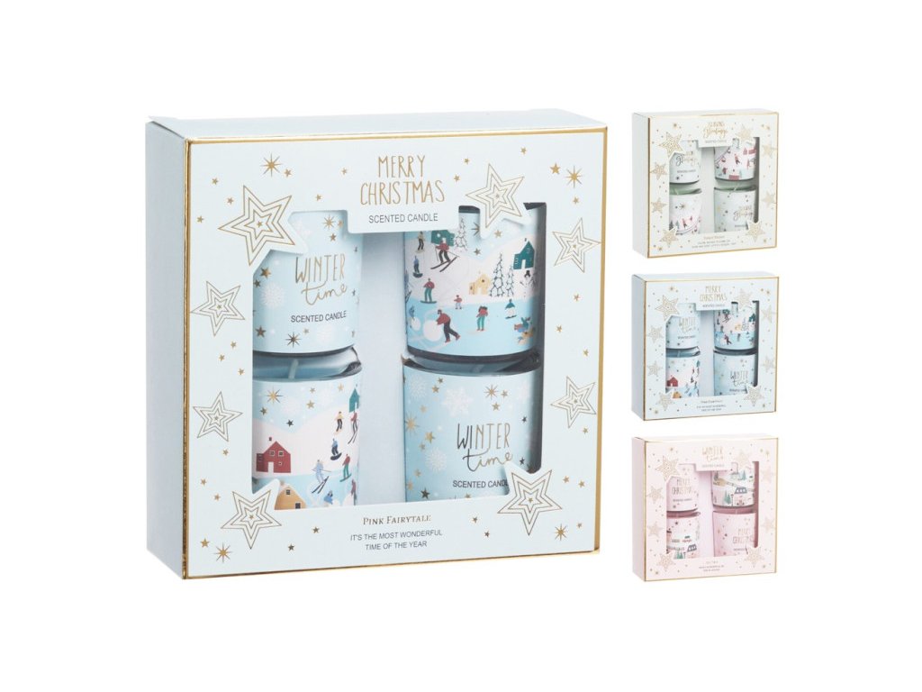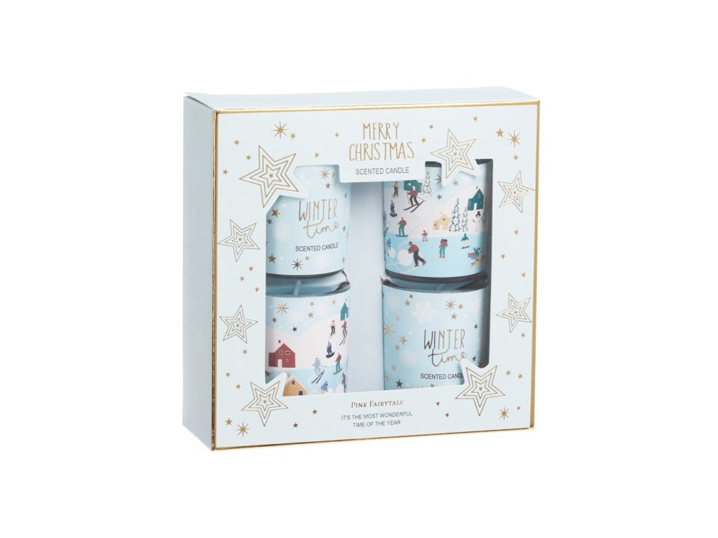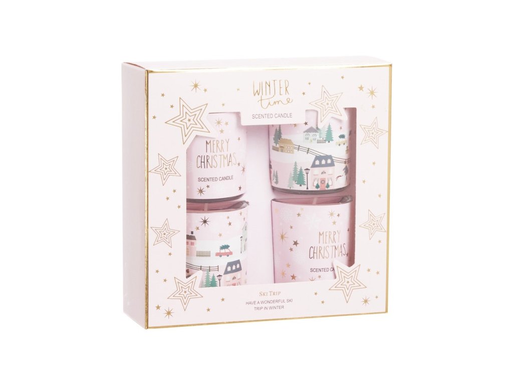 Sada dárková Sklo 4ks vonná svíčka 45x52mm Merry Christmas mix, barevná