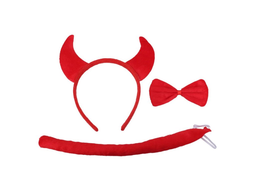 Set obsahuje: čelenku s růžky, motýlka a ocas