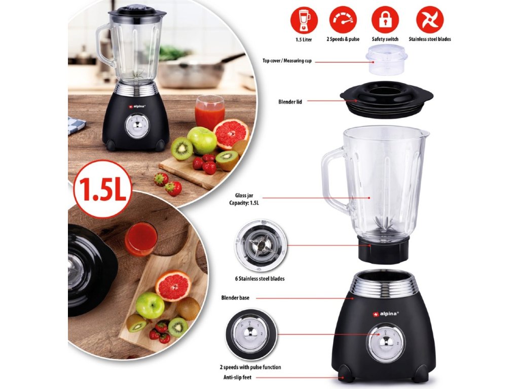 Kombinujte bez konce při přípravě smoothies, dětských svačinek nebo jiných tekutých potravin se stojanovým mixérem Alpina. Mixér má stabilní skleněnou nádobu s objemem 1,5 litru, kterou lze po použití vložit do myčky. Nohy jsou protiskluzové, aby se zabránilo sklouznutí vibracemi. Smoothie Maker má 3 nastavení, totiž rychle, pomalé nebo pulzující pro perfektní výsledek.Specifikace stojanového mixéru alpinaRozměry: 205 x 175 x 385 mmHmotnost: 3250 gVstupní napětí: 220 - 240 VAC, 50/60 HzMax. Příkon: 500 WObjem konvice: 1,5 litruDoplňkové parametry