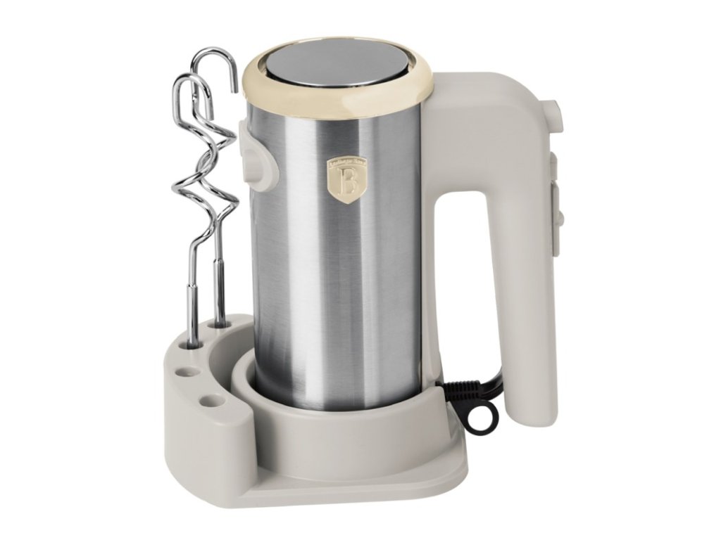 Praktický a elegantní pomocník do každé kuchyně. Tento ruční šlehač v jemné krémové barvě kombinuje výkon, funkčnost a stylový design. Díky stojanu a možnosti uložení příslušenství šetří místo a je vždy po ruce.