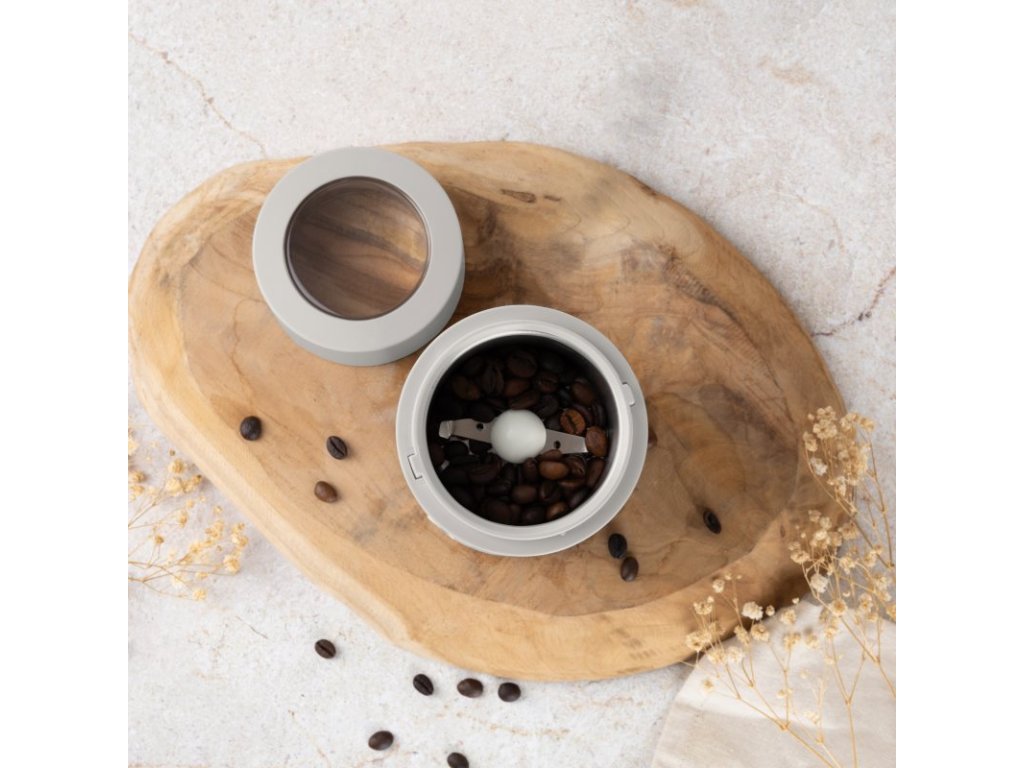 Začněte den vůní právě namleté kávy, která provoní celý domov. Tento stylový elektrický mlýnek v matné krémové barvě je nejen elegantní, ale i mimořádně výkonný. Díky nerezovým čepelím a pevné nerezové míse zvládne snadno a rychle rozemlít nejen kávová zrna, ale i ořechy či koření. Intuitivní ovládání jedním dotykem zaručuje maximální pohodlí, ať už připravujete ranní espresso, nebo ochucujete domácí pečení. Mletí s tímto mlýnkem je nejen efektivní, ale i radost.