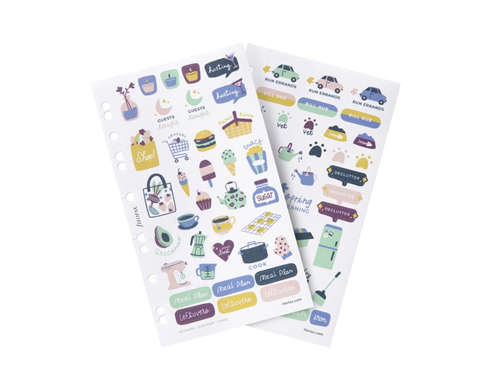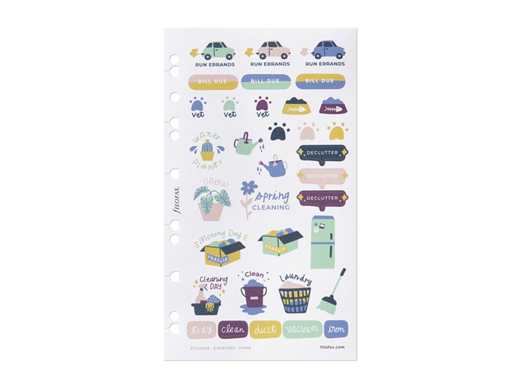 Zpříjemněte si péči o domácnost s touto sadou samolepek z kolekce Everyday. Samolepky můžete používat opakovaně a snadno na ně můžete psát díky matnému povrchu. Obsahuje šest archů samolepek se dvěma jedinečnými vzory. Sadu můžete jednoduše vložit do vašeho diáře či Clipbooku A5 a Osobní nebo zápisníku Filofax Notebook A5.Další vlastnosti