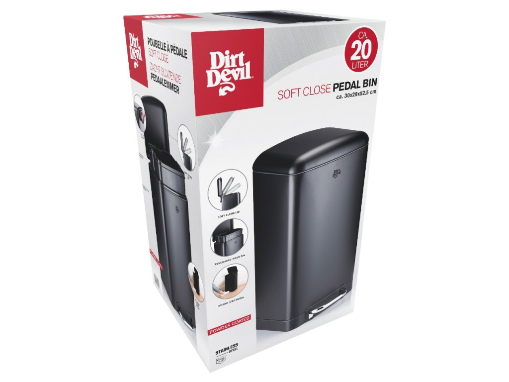 Zdá se vám, že váš odpad je každý den plný? S tímto 20litrovým pedálovým košem od Dirt Devil již tento problém nebudete mít! Tento černý nerezový koš nabízí nejen řešení pro váš odpad, ale také vypadá moderně a elegantně. Umístěte jej do kuchyně, koupelny nebo kanceláře, abyste měli pořádek. Díky mechanismu soft-close nádoby se víko při otevírání nezavře a pachy se tak rychle nešíří po místnosti. Díky vyjímatelnému vnitřnímu kbelíku se nádoba snadno vyprazdňuje. Tu lze z nádoby vyjmout během několika sekund a stejně snadno ji po vyprázdnění znovu vložit. Díky nožnímu pedálu ve spodní části pedálového koše se nemusíte dotýkat víka, abyste jej otevřeli.Specifikace Dirt Devil Soft Close pedálový koš 20L
