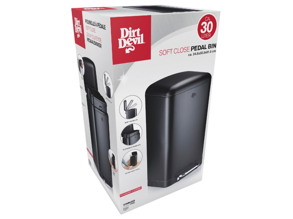 DIRT-DEVIL Odpadkový koš nášlapný 30 l tiché zavírání černá ED-249506