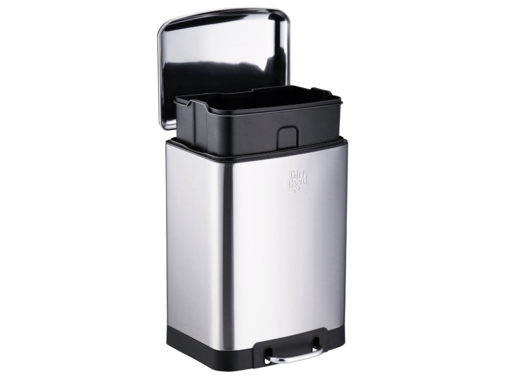 Udržujte svůj interiér uklizený s tímto 6litrovým pedálovým košem od Dirt Devil. Elegantní a moderní stříbrný kbelík je nejen funkční pro ukládání odpadu, ale také dodává punc elegance například ve vaší kuchyni nebo koupelně. S kapacitou 6 litrů je tento koš ideální pro použití v kuchyni, koupelně, ložnici nebo kanceláři. Se svými rozměry 23 x 22,5 x 32,5 centimetrů se tento pedálový odpadkový koš snadno vejde do malých prostor, přesto nabízí dostatečnou kapacitu pro veškerý každodenní odpad. Mechanismus měkkého zavírání zajišťuje tiché zavírání víka, čímž eliminuje hlasité zvuky při zavírání a nežádoucí pachy. Navíc se nemusíte dotýkat víka, protože koš se otevírá pomocí nožního pedálu ve spodní části. Praktickou vlastností tohoto pedálového koše je vyjímatelný vnitřní koš, díky kterému je vyprazdňování a čištění snadný úkol. Vnitřní kbelík můžete snadno vyjmout, zlikvidovat odpad a bez námahy znovu vložit. Díky robustní nerezové konstrukci je pedálový koš Dirt Devil nejen odolný při každodenním používání, ale také se snadno čistí a udržuje.Technické údaje Dirt Devil pedálový odpadkový koš s funkcí měkkého zavírání 6L