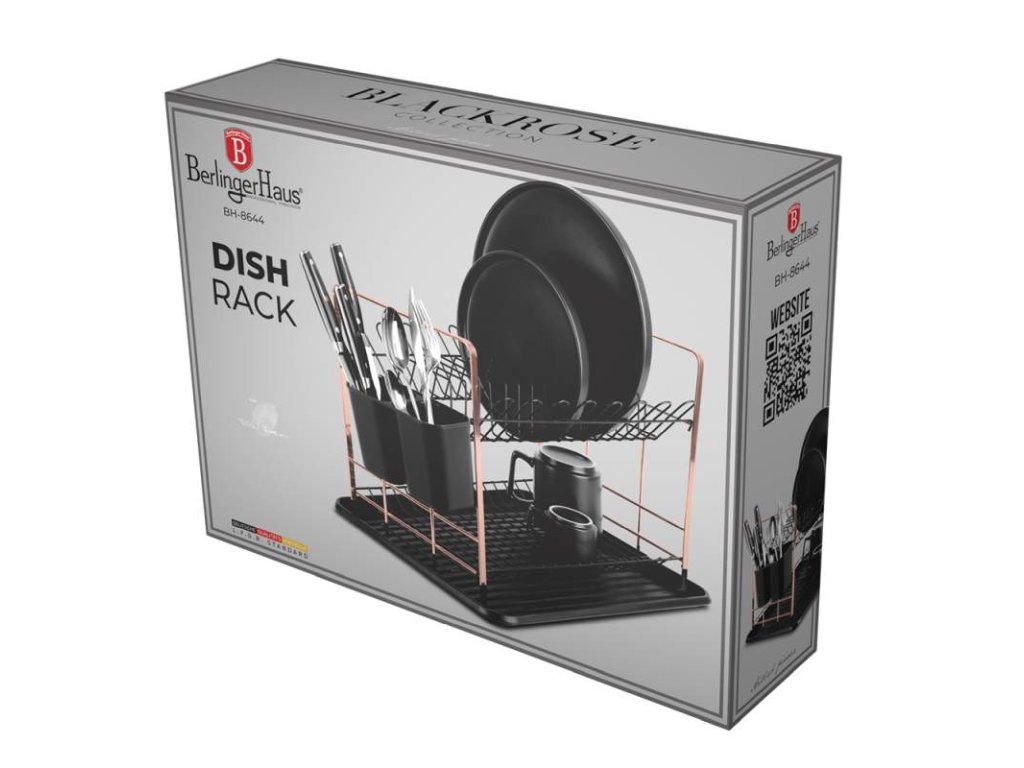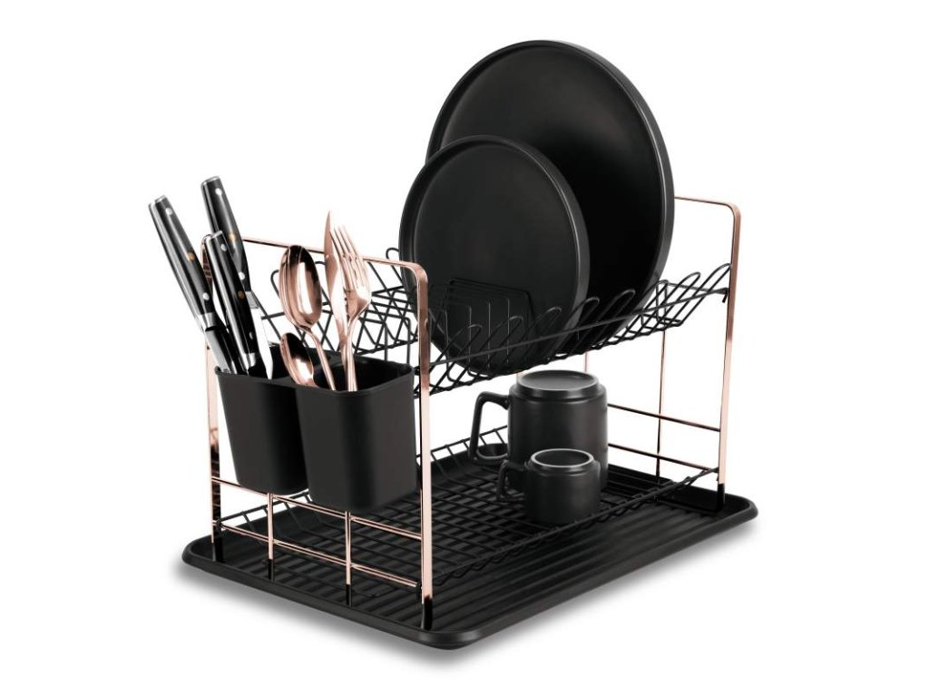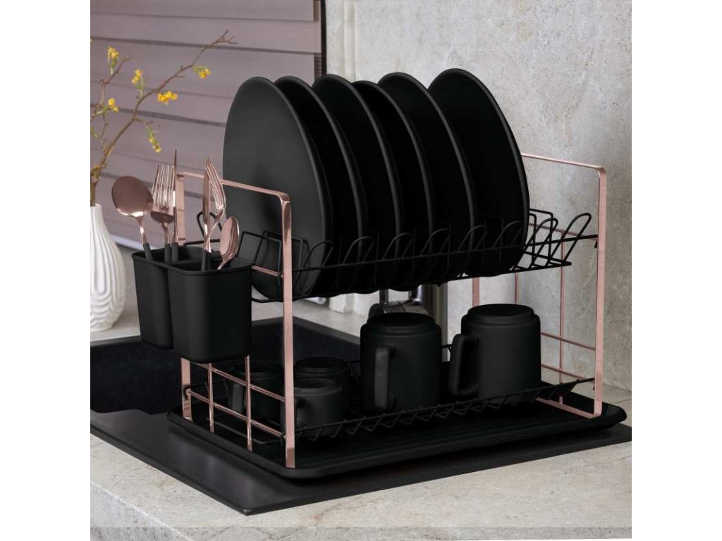 Prakticky vybavený odkapávač na nádobí z kolekce Black Rose Collection- vyrobený v kombinaci chromované oceli a PP plastu