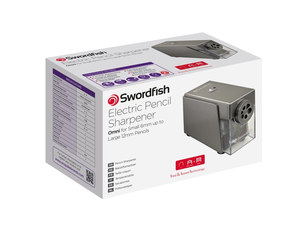 Elektrické ořezávátko Swordfish Omni bylo navržené pro každodenní použití v prostředí, kde se ostří často a bez kompromisů. Díky pevné konstrukci, rychlému ostření a spirálové fréze je ideální volbou pro školy, školky, výtvarné učebny i kanceláře.